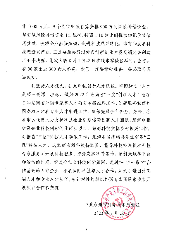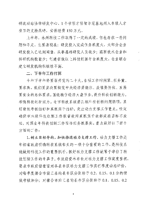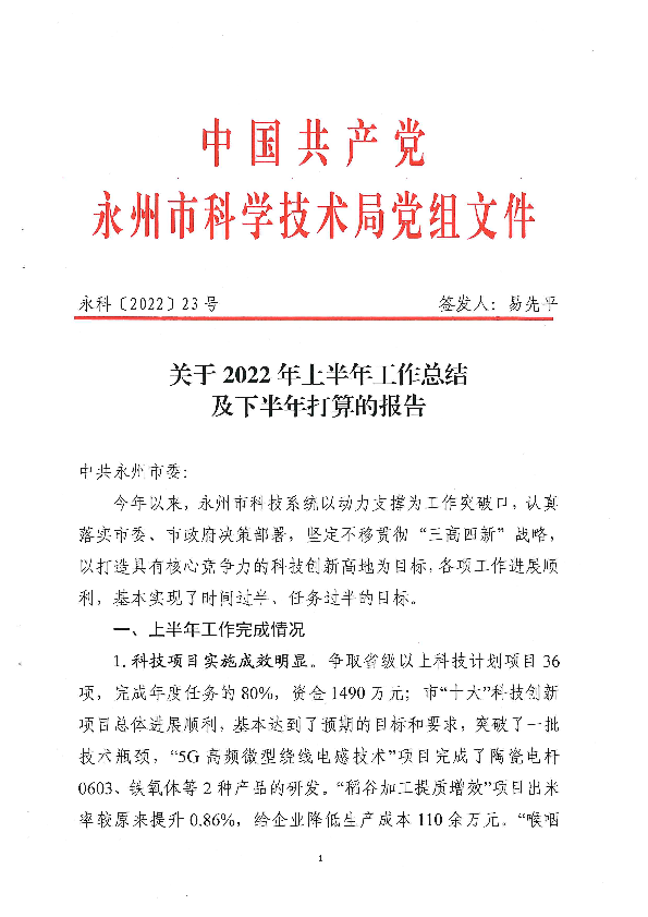 关于2022年上半年工作总结及下半年打算的报告_计划规划_市科学技术局_永州市人民政府