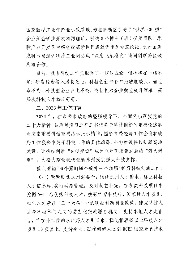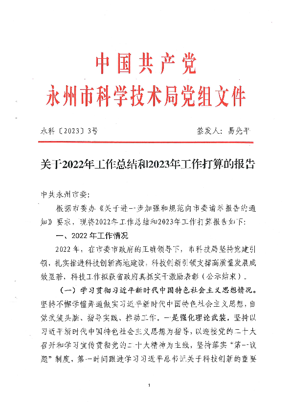 关于2022年工作总结和2023年工作打算的报告_计划规划_市科学技术局_永州市人民政府