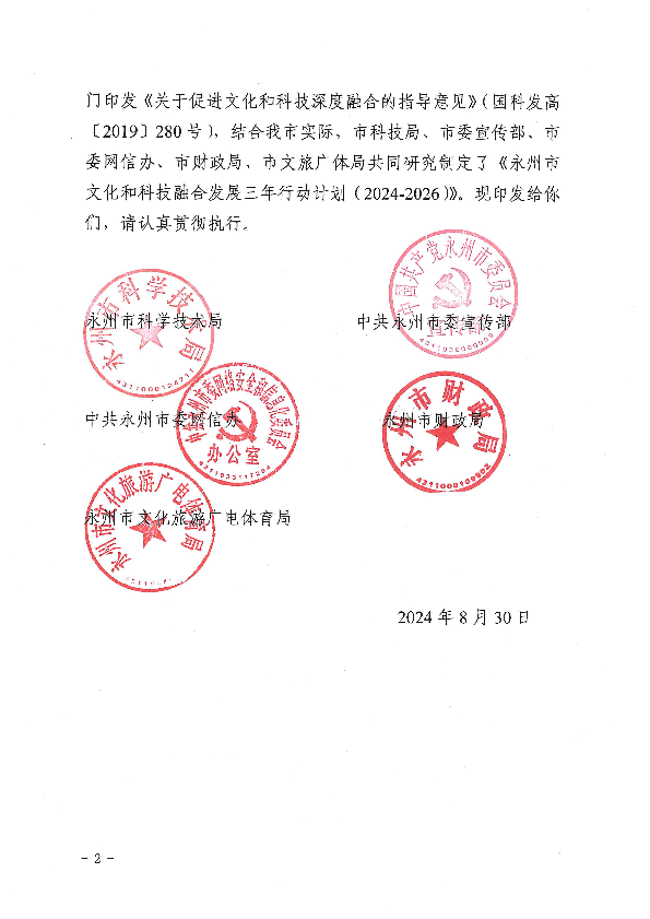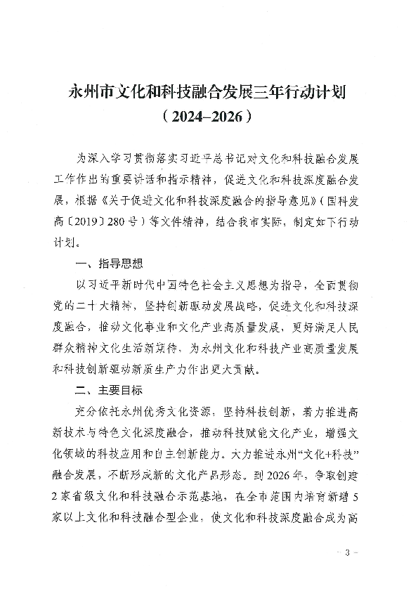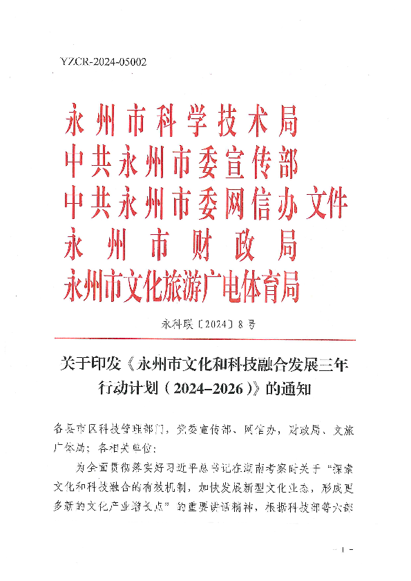 关于印发《永州市文化和科技融合发展三年行动计划(2024-2026)》的通知_计划规划_市科学技术局_永州市人民政府