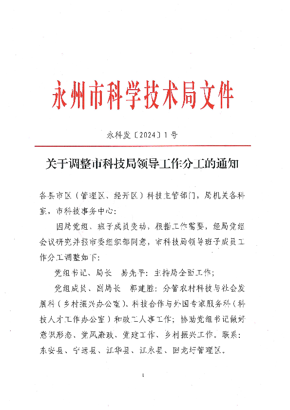 关于调整十大博彩平台领导工作分工的通知_人事信息_市科学技术局_永州市人民政府