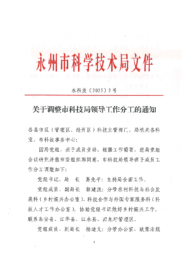 关于调整十大博彩平台领导工作分工的通知_人事信息_市科学技术局_永州市人民政府