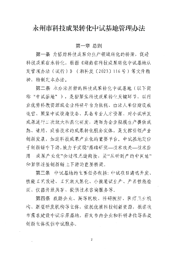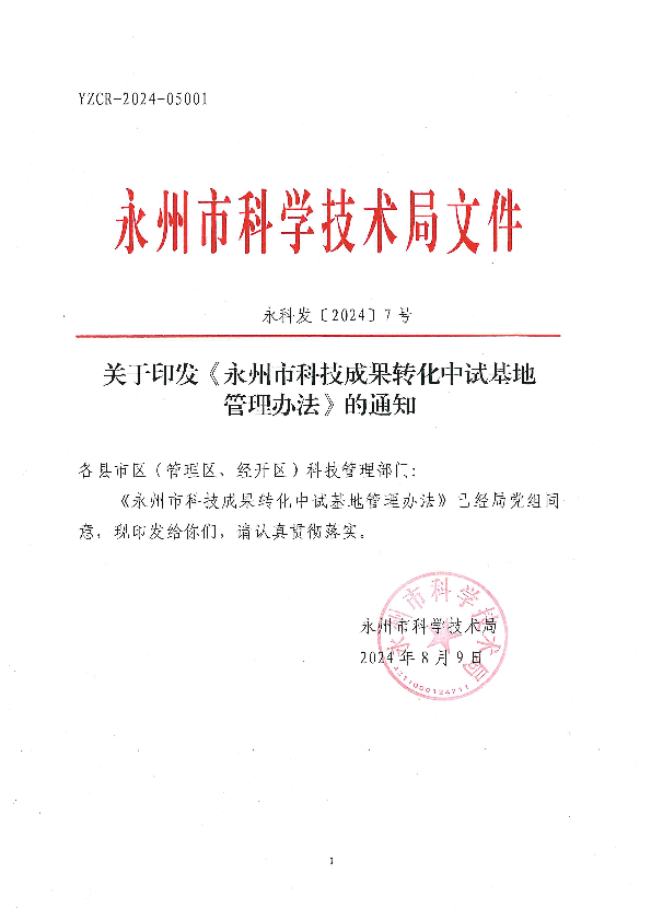 关于印发《永州市科技成果转化中试基地管理办法》的通知_创新成果转化_市科学技术局_永州市人民政府
