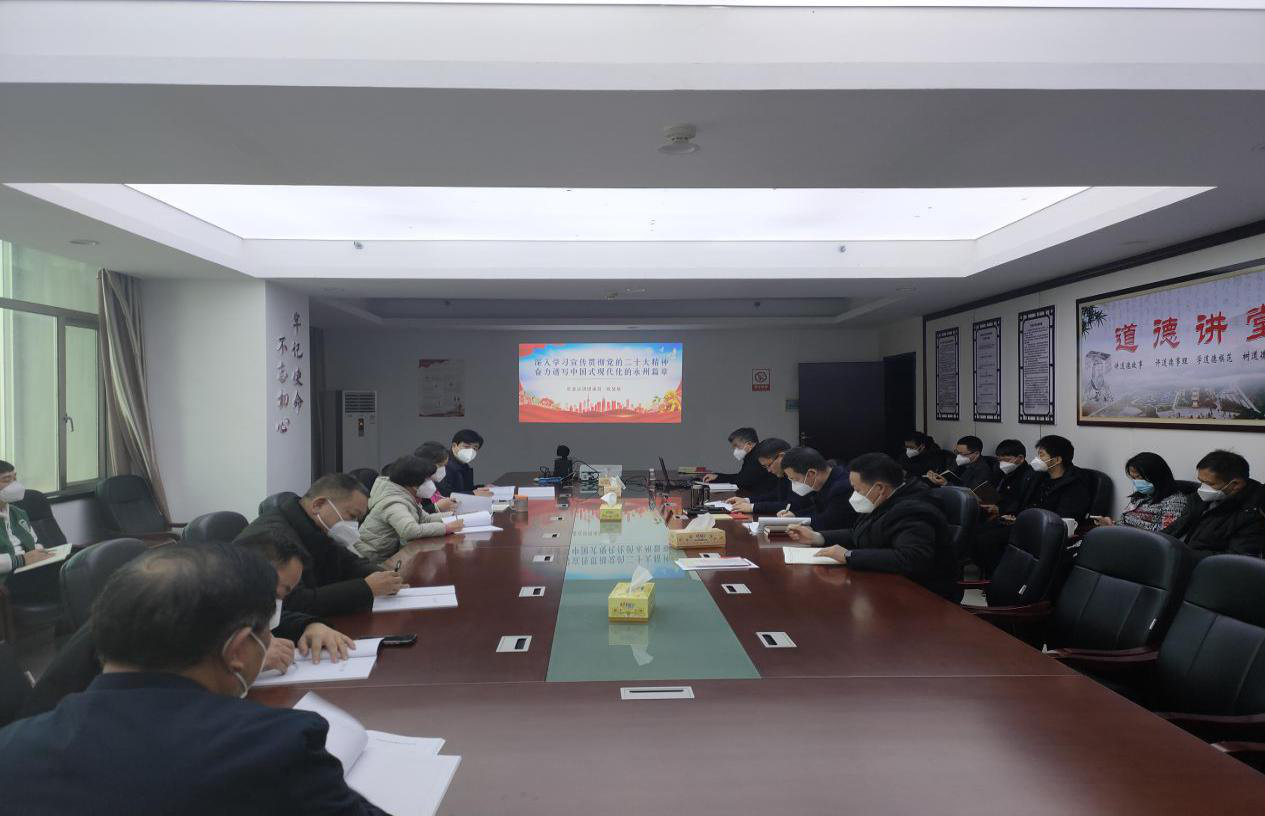 易先平指出,科技部门全体党员干部要将学习贯彻党的二十大精神作为当前和今后一个时期的首要政治任务,要原原本本学、联系实际学、全面系统学,真正用党的二十大精神武装头脑、指导实践、推动科技工作,把党的二十大精神转化为科技工作任务、思路举措、执政本领和精神动力,以钉钉子精神抓好科技工作落实,让科技创新“关键变量”成为永州高质量发展的“最大增量”,努力走出一条欠发达地区科技创新的新路子,为构建“一核两轴三圈”区域经济格局、奋力建设现代化新永州提供强大科技支撑!