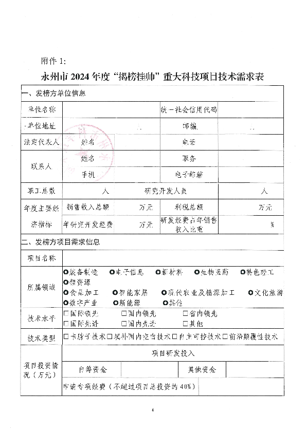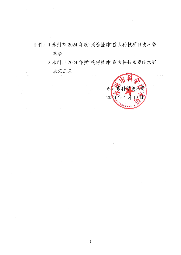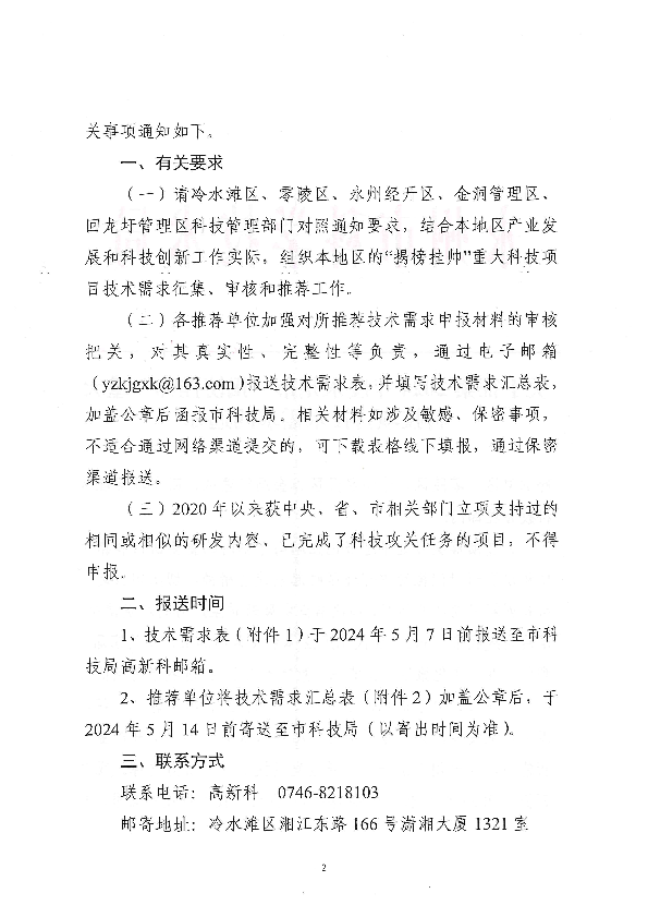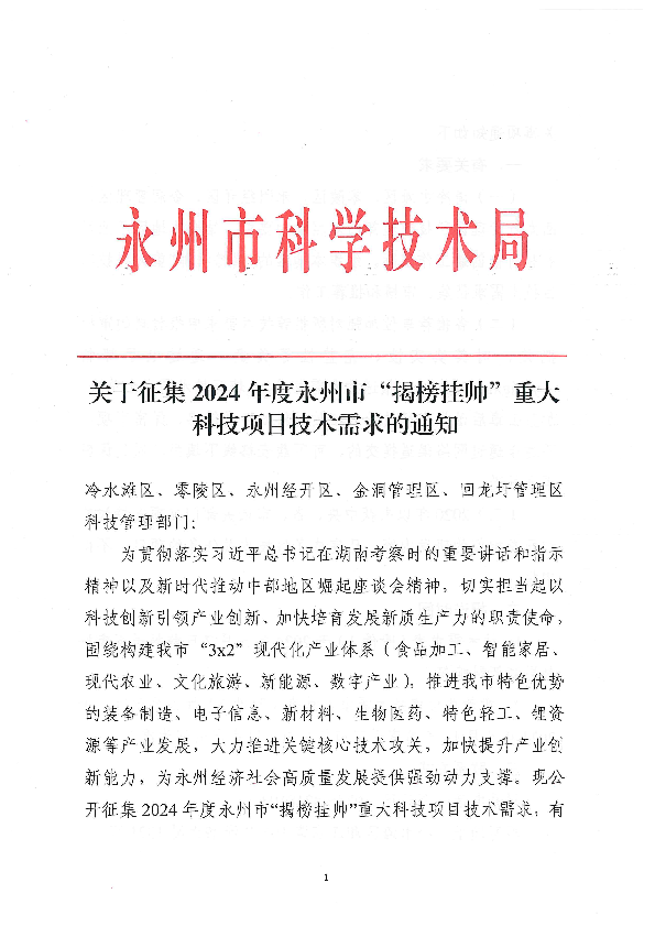 关于征集2024年度永州市“揭榜挂帅”重大科技项目需求的通知_关键核心技术_市科学技术局_永州市人民政府