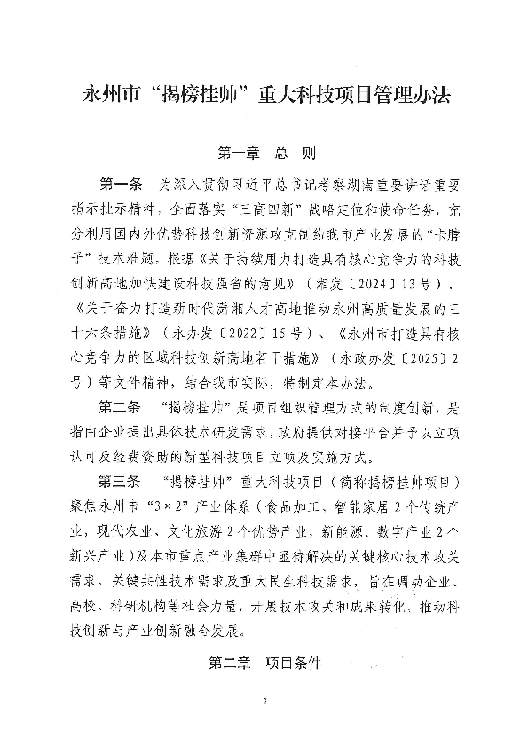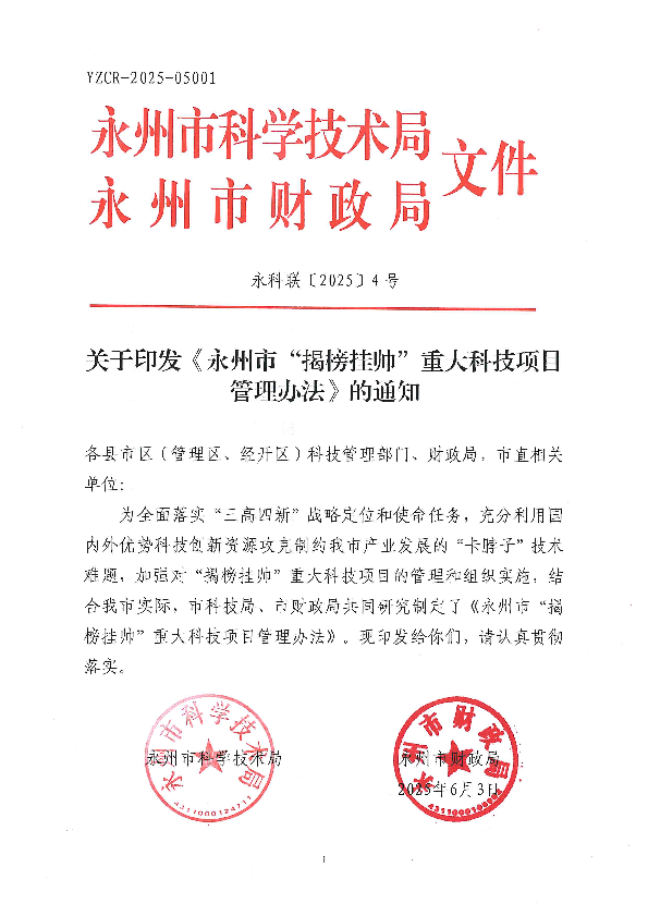 关于印发《永州市“揭榜挂帅”重大科技项目管理办法》的通知_关键核心技术_市科学技术局_永州市人民政府