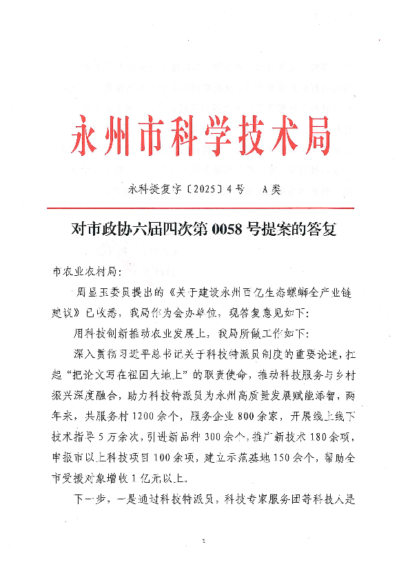 对市政协六届四次第0058号提案的答复_建议提案_市科学技术局_永州市人民政府