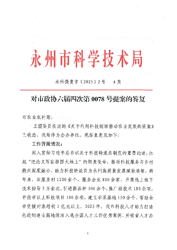 对市政协六届四次第0078号提案的答复_建议提案_市科学技术局_永州市人民政府