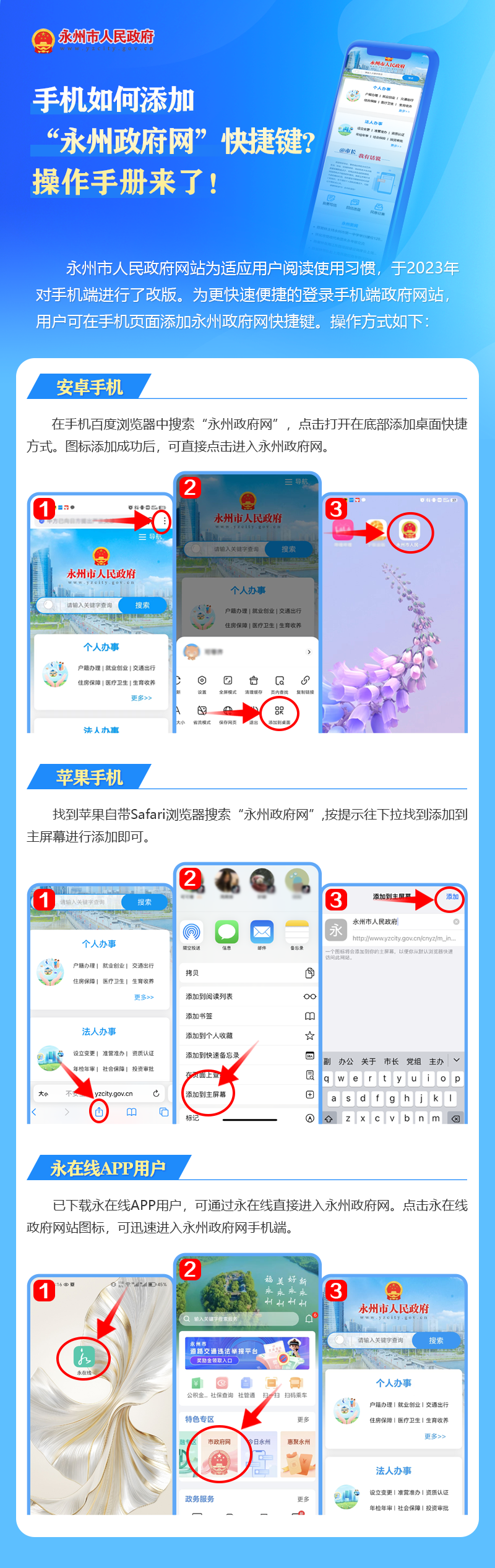 手机如何添加“永州政府网”快捷键?操作手册来了!